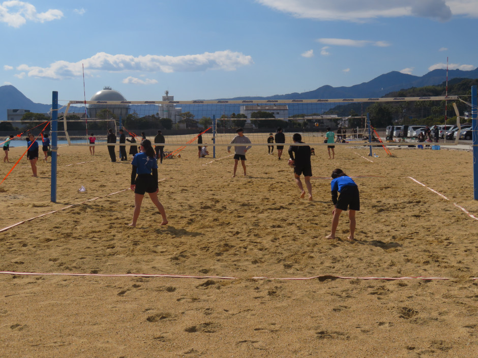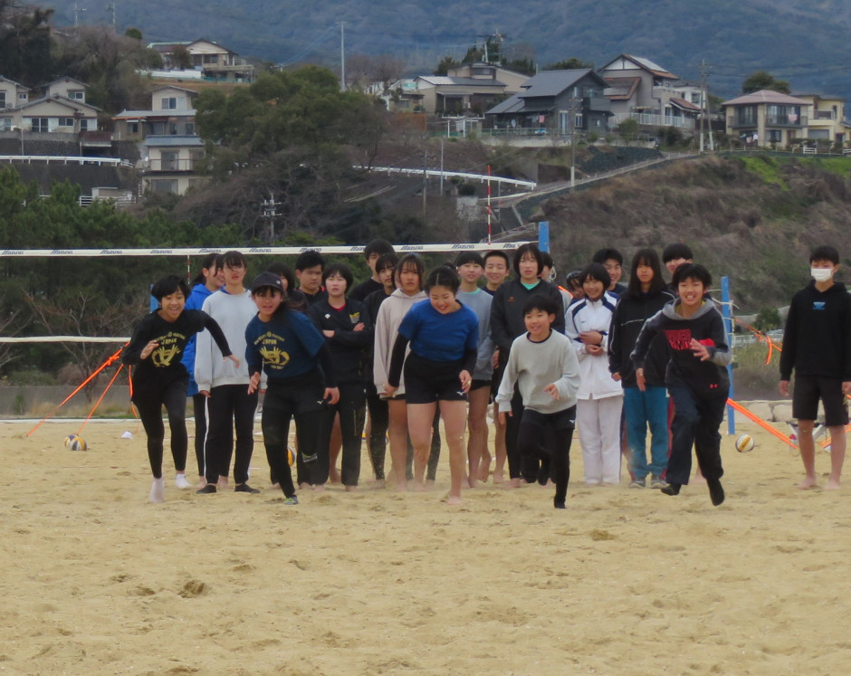 ビーチバレーを通じて小中の交流をして、そしてビーチフラッグも行いさらなる交流を深めました。