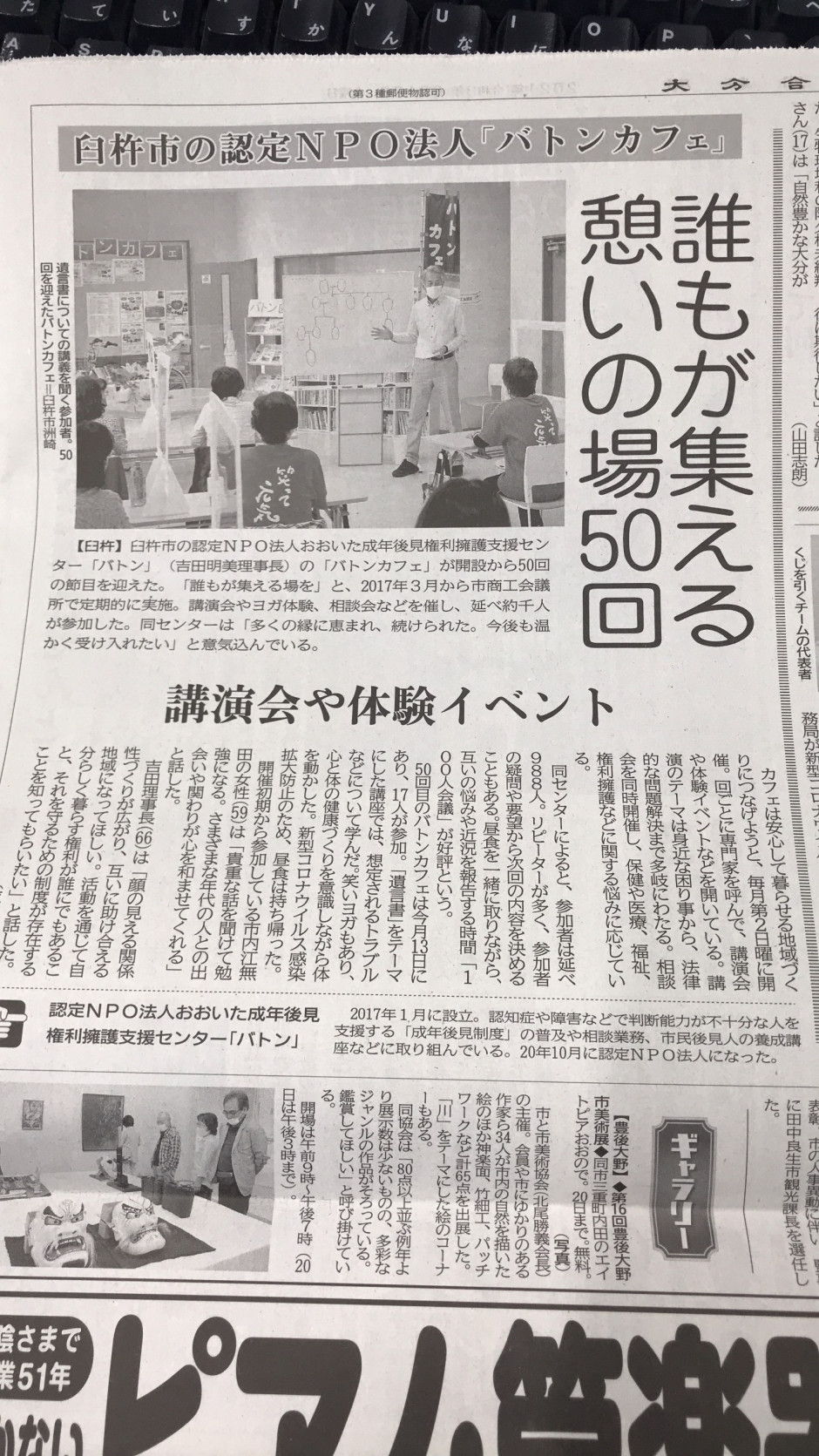 大分合同新聞社に掲載されました。(第50回バトンカフェ(定期))