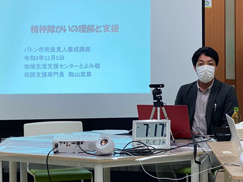 12月3日午後7時半から17日目(令和3年度第5回バトン市民後見人養成講座)を、会場とZoomのハイブリット方式で開催しました。