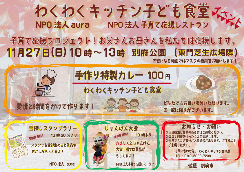 別府市後援をいただき、別府公園近辺の小中学校にチラシを配りお知らせをしておりました!
