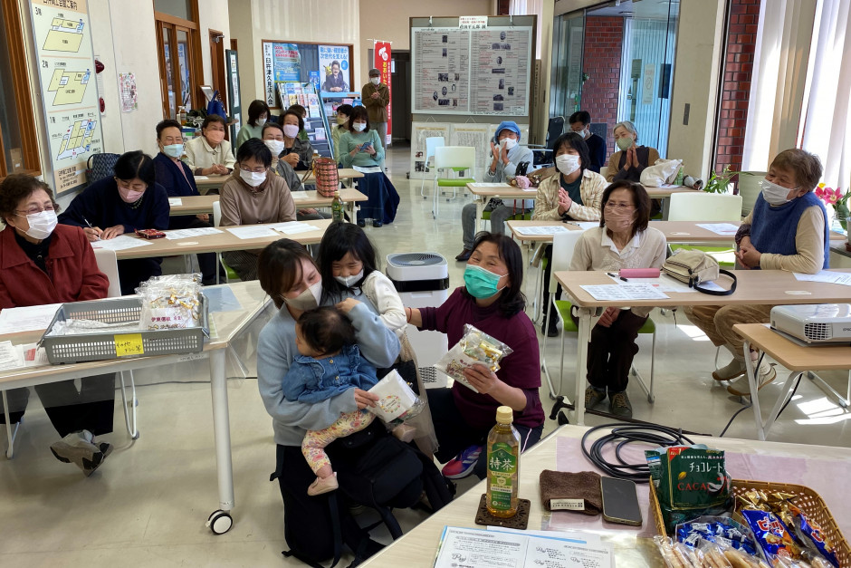 4月のお誕生日の方へ、バトンから心ばかりのプレゼントを差し上げました。参加者の皆さんからのお祝いを喜ばれていました。
