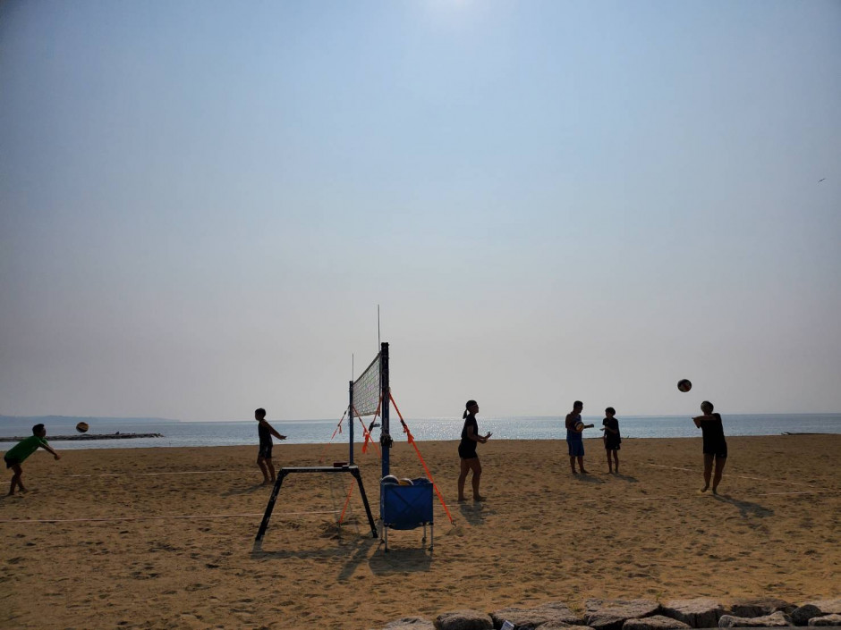 9月7日にビーチバレーボール練習をおこないました。暑さも落ち着いてきて皆楽しそうに練習していました。台風で舞い上がった砂をもとに戻す作業も行いました。