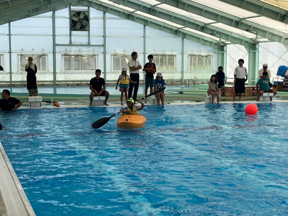 小学4年生~中学生を対象にカヌー体験とプールでタイムトライアルをさせていただきました。