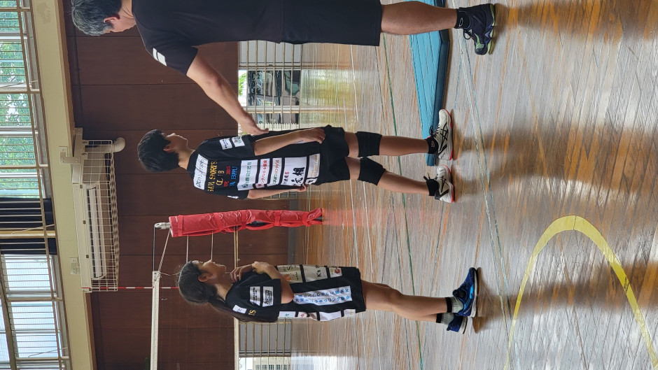 今日は入りたての選手もいたので基礎の動きとしてマットを使い動きを学びました。そのあとにはアタック、レシーブの基礎を教えました。これからの成長が楽しみですね!