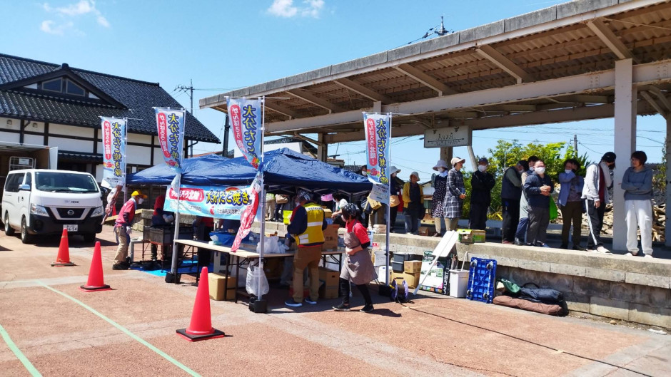 富山県氷見市では、好天に恵まれイベントに観光客も多数訪れて、たこ焼は、この日、約280パックを提供しました。