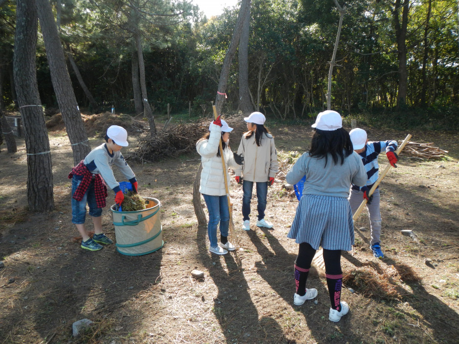 地元の小中学校で環境学習のお手伝いも行っています。令和2年度は、小楠小学校の4年生が干潟観察会をきっかけとして、浜辺をきれいにしたいとビーチクリーンと松葉かきをしてくれました。地元の県立工科短期大学の新入生向けにも海辺の環境や活動についての紹介を毎年行っており、海岸清掃などの活動を行っています。また、中津干潟の保全を推進してきたことにより、近郊からの視察や、調査に訪れた県外の水産大学校の学生が松林整備のお手伝いを申し出てくれる等、これまで環境保全と啓発活動を地道に積み重ねてきたことで、少しずつですがプロジェクトへの賛同・参加者が増えてきています。