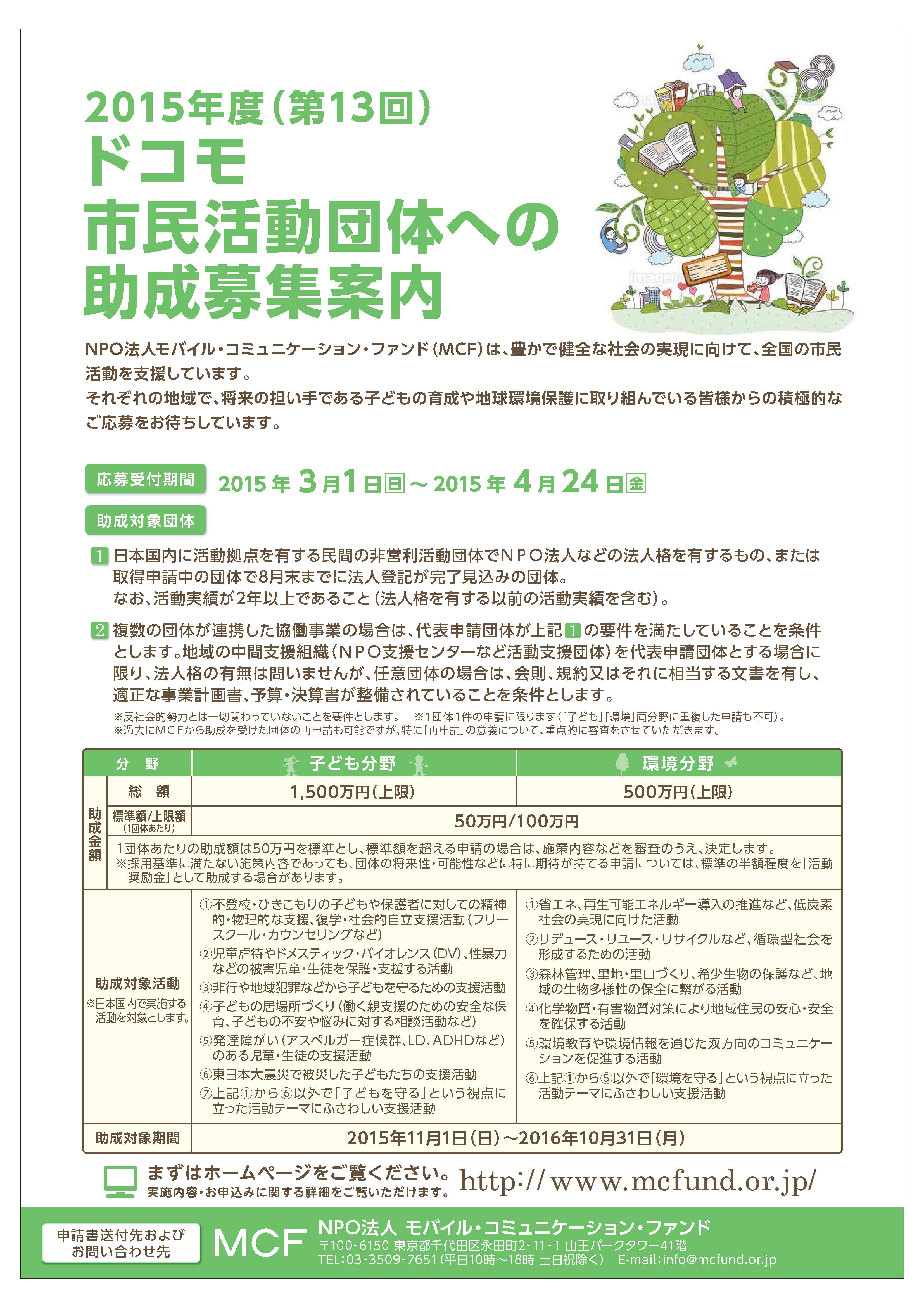 【助成金情報】ドコモ市民活動団体への助成募集案内