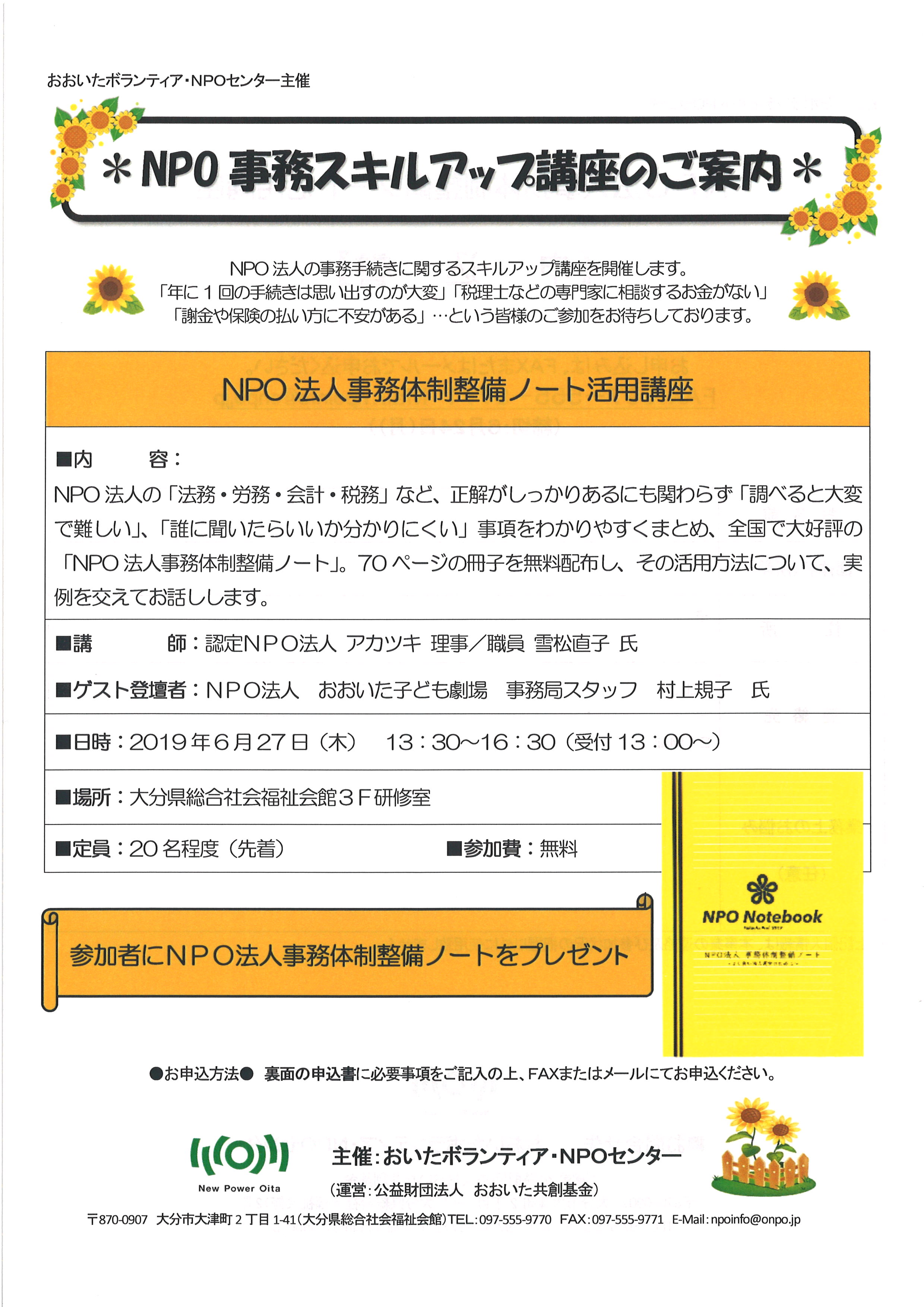 【参加者募集】6/27(木)NPO事務スキルアップ講座(おおいたボランティア・NPOセンター)