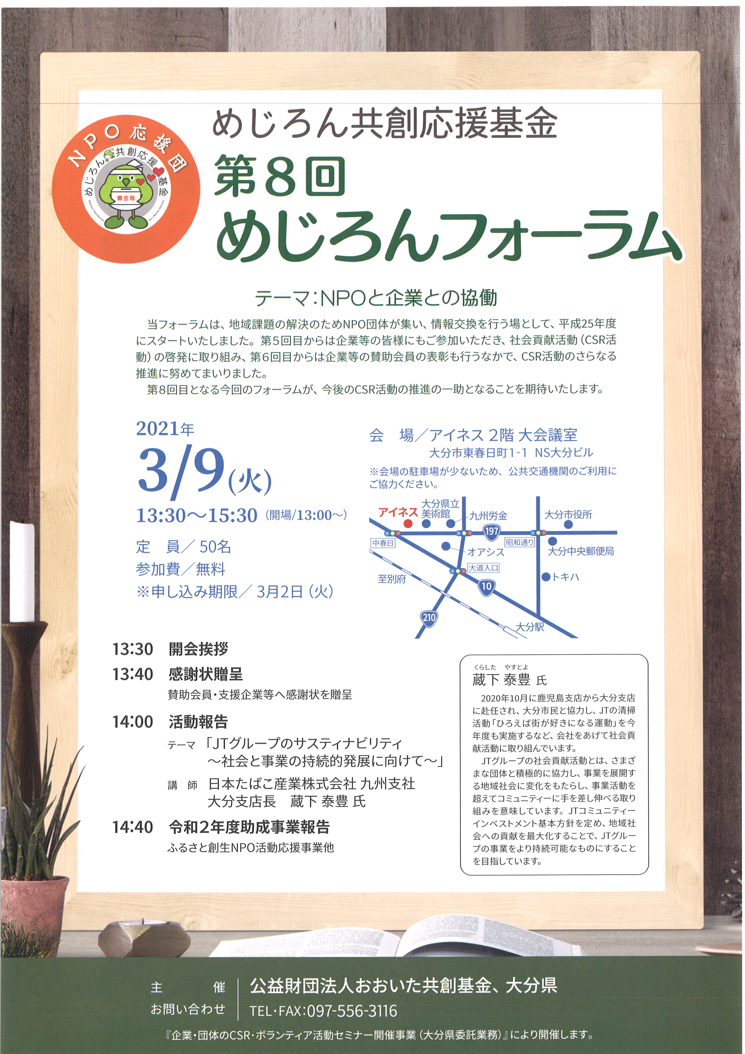 【参加者募集】3/9(火)「めじろんフォーラム」開催(おおいた共創基金)
