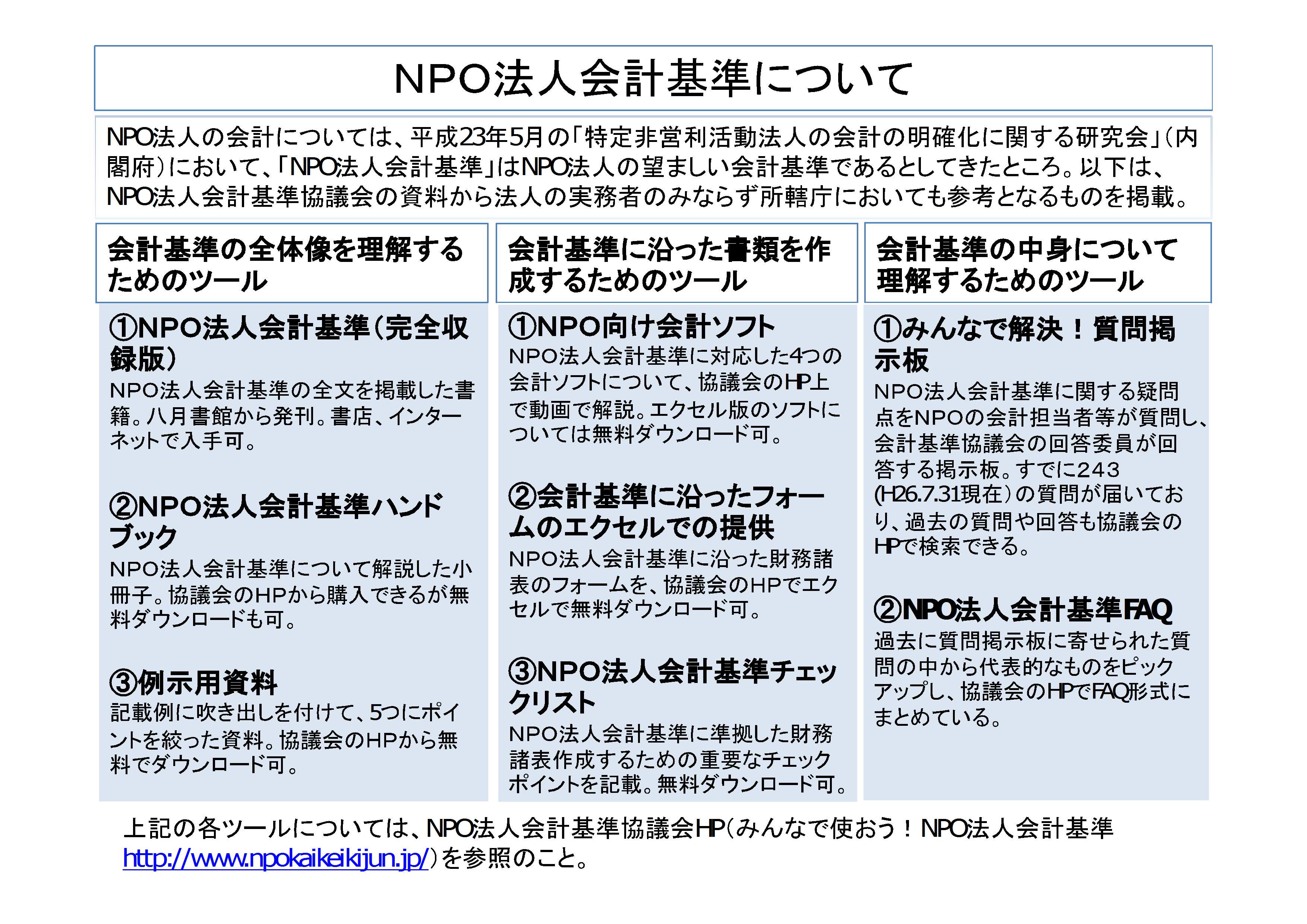 NPO法人会計基準協議会の資料から抜粋した「NPO会計基準について」を作成しましたので、