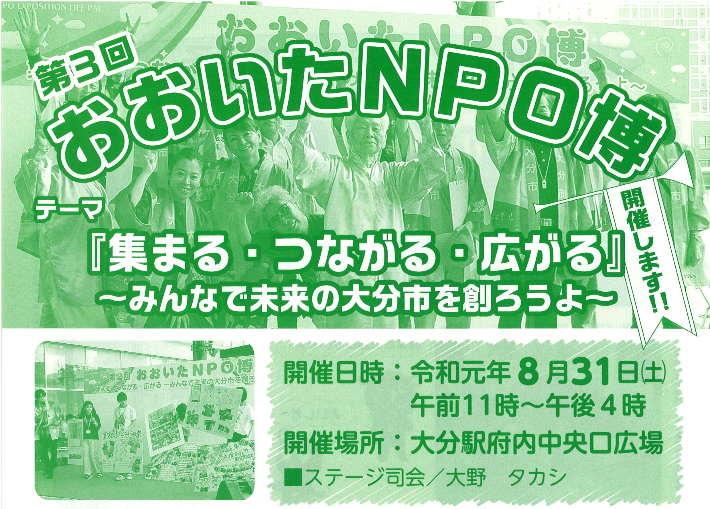 【イベント情報】8/31(土) 第3回「おおいたNPO博 開催!」(大分市 ライフパル)