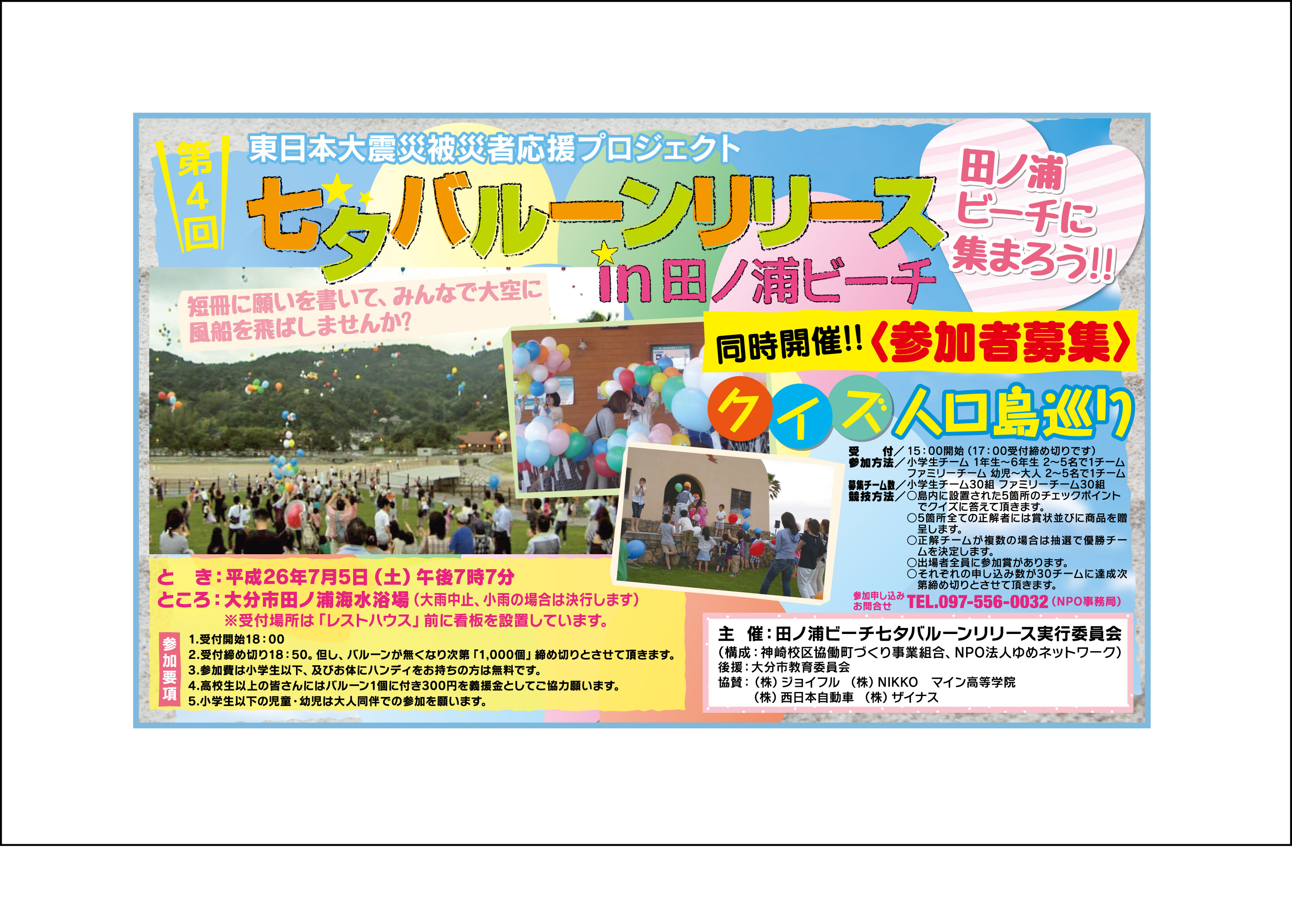 【イベント情報】第7回七夕バルーンリリースin田ノ浦ビーチ(NPO法人ゆめネットワーク)