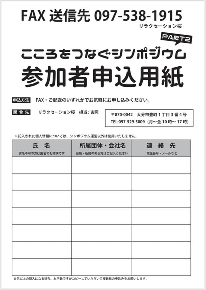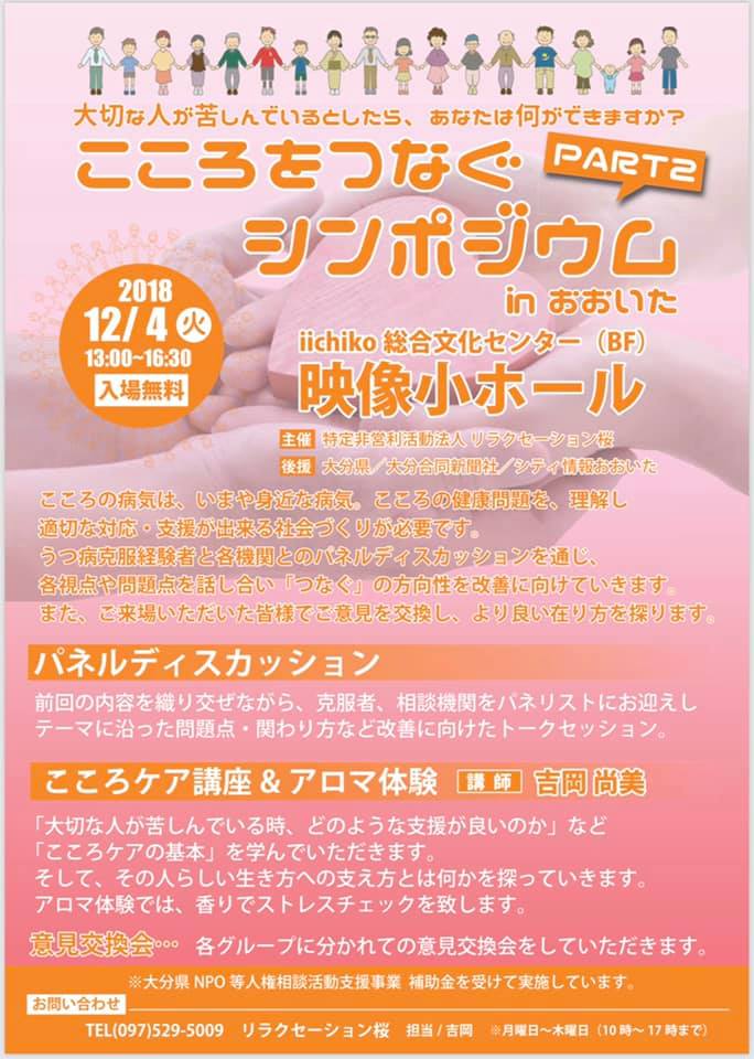 【参加者募集】12/4「こころをつなぐシンポジウム in おおいた PART2」を開催します(NPO法人リラクセーション桜)