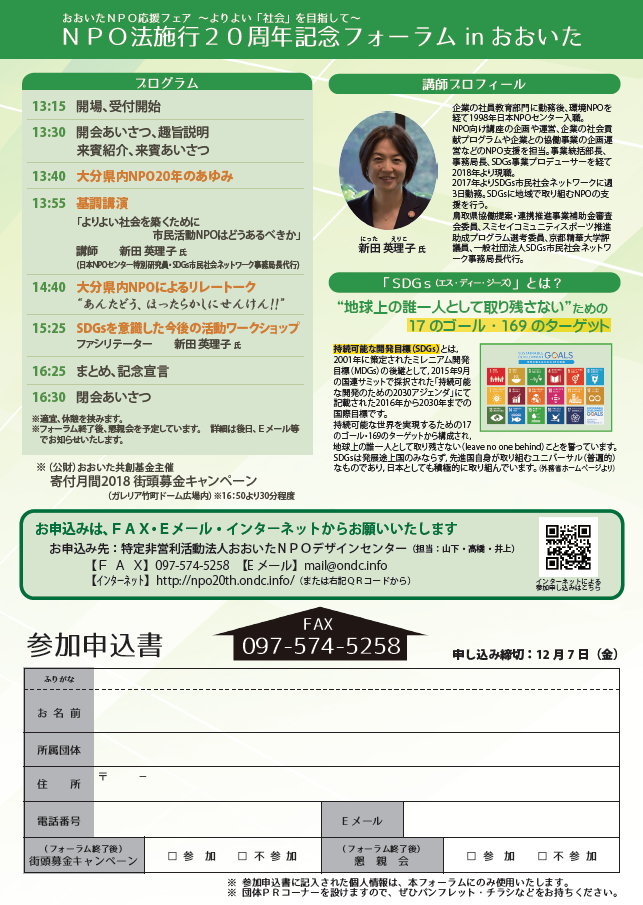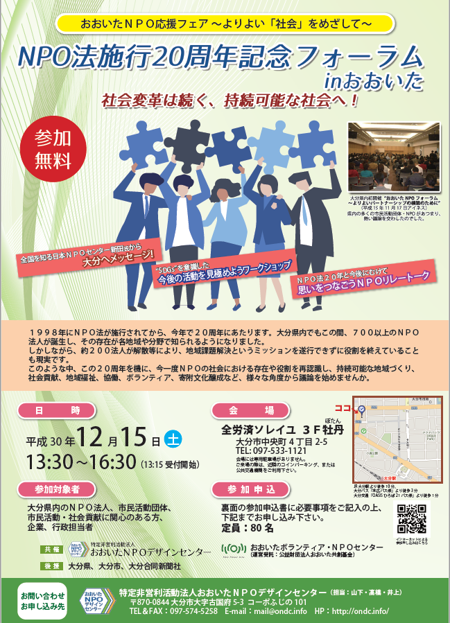 【受付終了】12/15(土)NPO法施行20周年記念フォーラムinおおいた