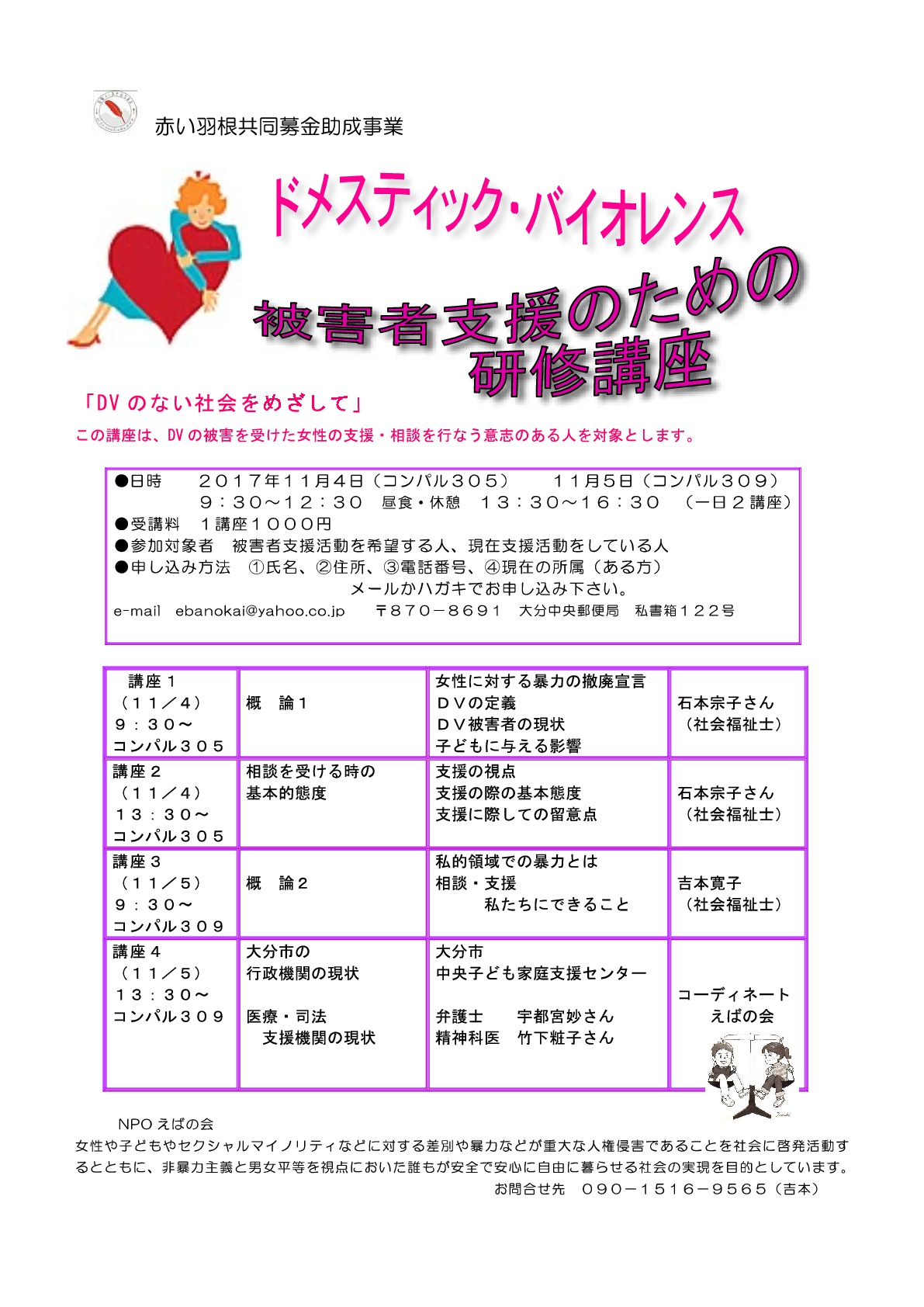 【終了】11/4・5 DV被害者支援のための研修講座を開催します(NPOえばの会)