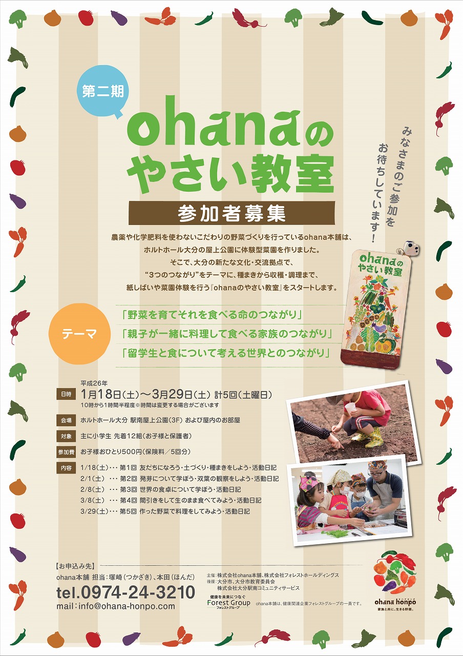 【ohana本舗】ohanaのやさい教室 参加者募集!