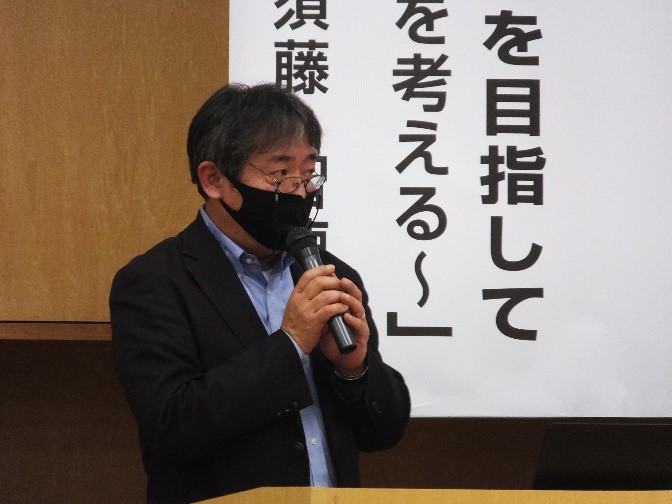 立命館アジア太平洋大学 アジア太平洋学部 教授 須藤 智徳 氏を招いて 「SDGsでつながる社会貢献活動を目指して~コロナ禍での活動を考える~」 をテーマにご講演いただきました。 SDGsの概要や、SDGsを活用してNPOがどのように社会に貢献していけるか、企業とどのように協力することができるかといったことについてもお話いただきました。 会場、オンラインからも質問が多数寄せられ、関心の高さが伺えました。