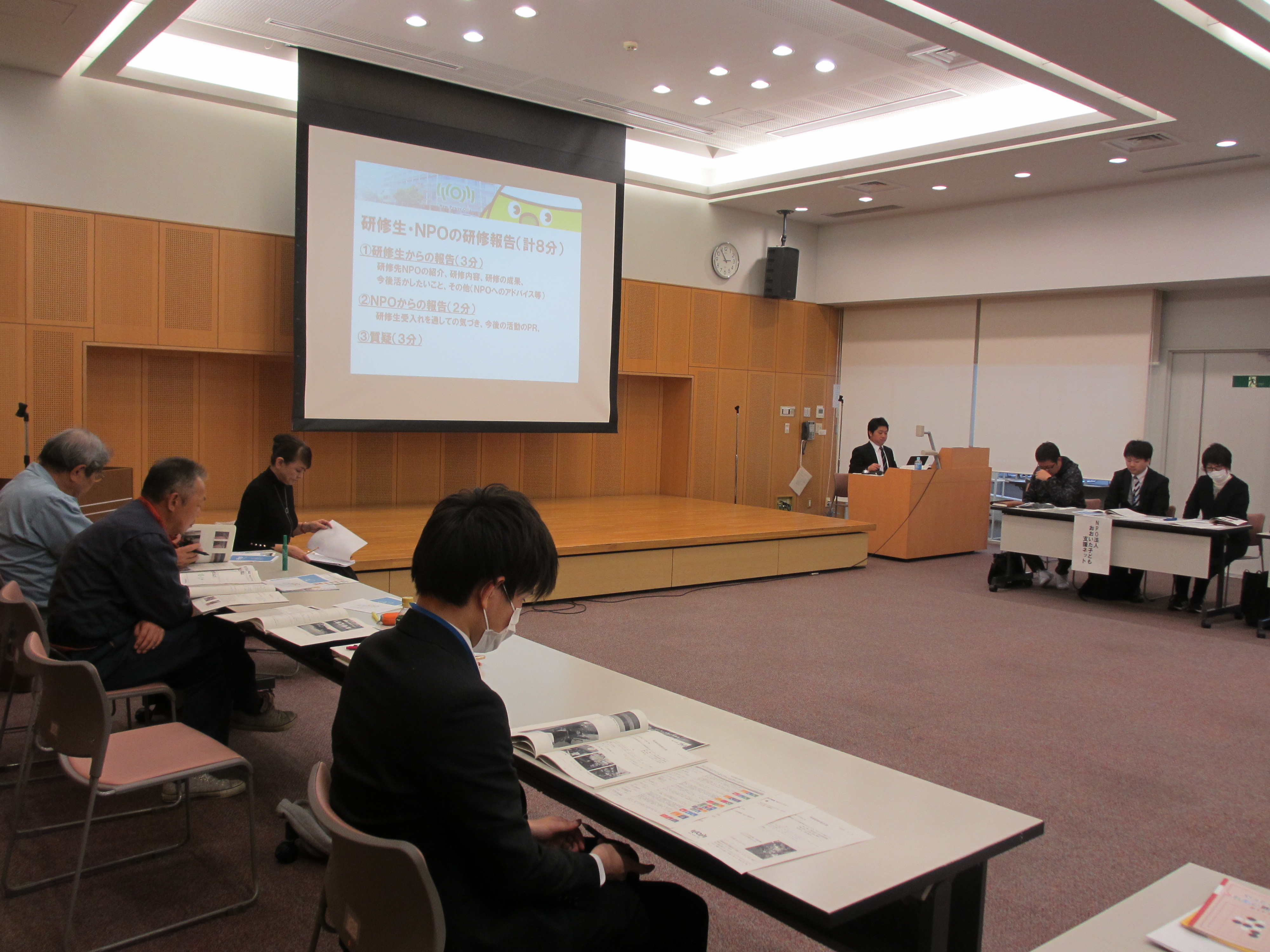 研修受講生がNPOの活動を体験して得た学びや、研修先NPOが受け入れを通して得た気づきを全体に向けて発表し、予定していた時間を最大限に使い、盛況のうちに閉会しました。