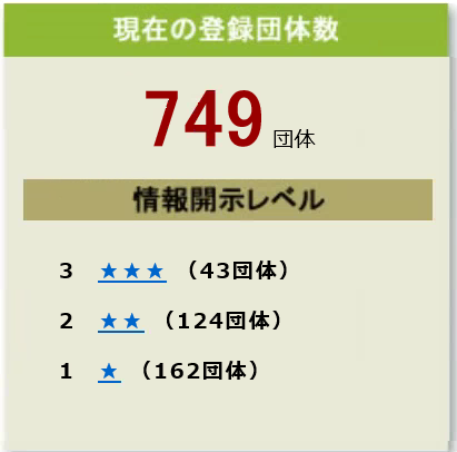 「おんぽ」では、登録団体の財務状況等の情報開示度を★の数で示しており、★の数が多いほど社会的な信頼確保につながります。