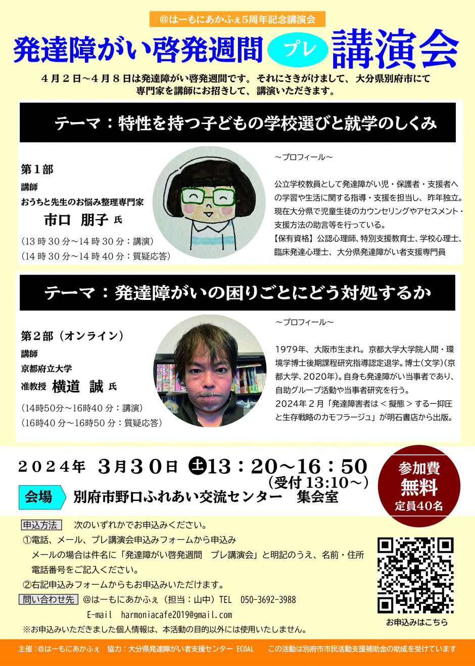それにさきがけて、大分県別府市にて専門家を講師にお招きし、講演をいただきます。