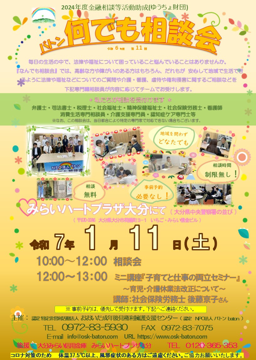 『第11回バトン何でも相談会』令和7年1月11日、10時~12時