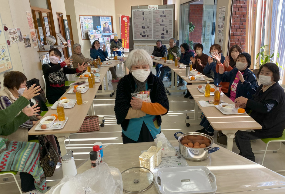 お野菜たっぷり、愛情たっぷりの手作り、和牛すじカレーとお菓子やヨーグルト、グリーンファーム久住さんから有精卵の卵をゆで卵にして、下ノ江の農家さんからミカンをご寄付頂き、提供しました。