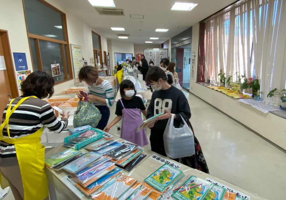 事前にアンケートで要望をお聞きし、ノートや鉛筆、シャープペン、フリクッションペンなど準備してお渡ししました。何種類かある中から自分好みの品物を選んだあと、子どもたちから笑顔でありがとうの言葉がきけて、嬉しくなったとボランティアの方が喜んでいました。