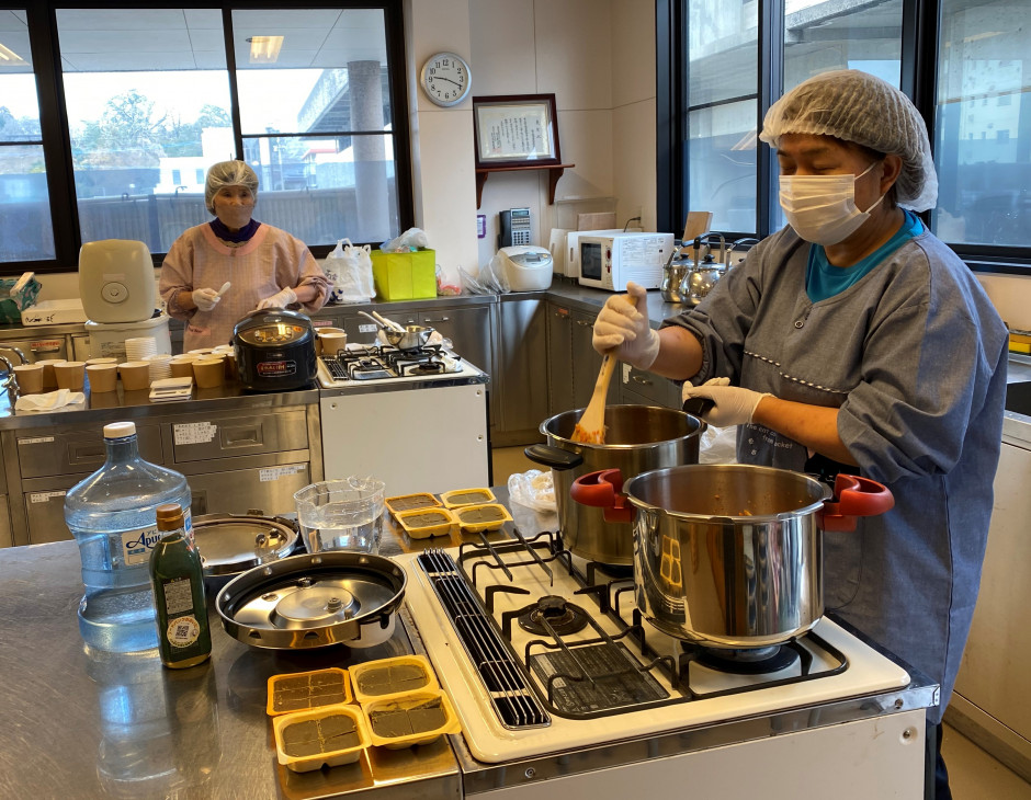 愛情たっぷりの牛筋カレーと大分県やフードバンクさんから頂いた、マスクや消毒液、ジュースやお菓子をお持ち帰り頂きました。