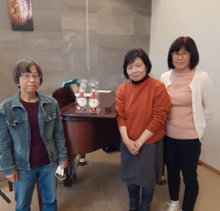 訪問先にメンバーの娘さんによる手作りサンタさん10体をプレゼントしました。参加者により飛び入りのアカペラもあり、終了後は楽しかった!と多くの感想を頂くなど、やりがいのある一日でした。