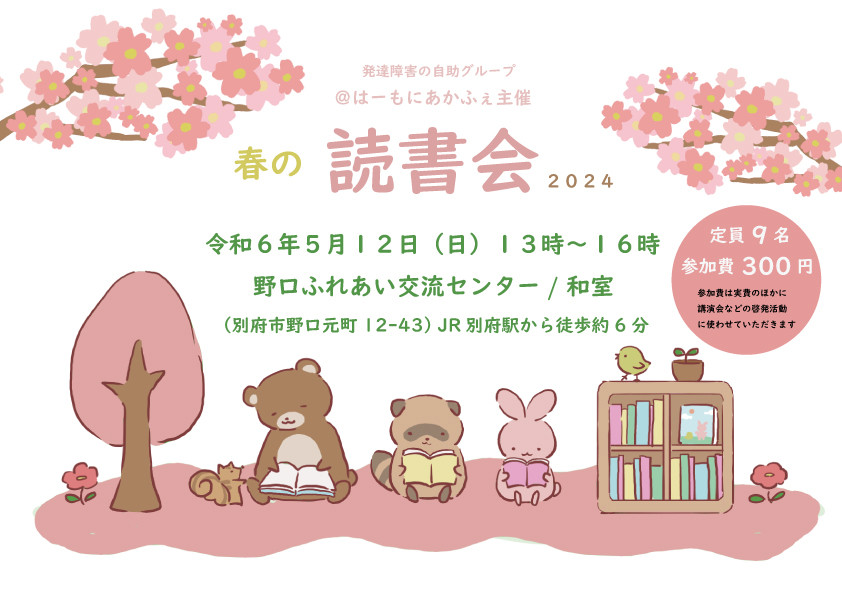 | 事務局 | みっくす交流会「春の読書会」2024事務局 お問合せ※当イベントは上記の事務局によって企画・運営されており、(株)こくちーずは関与しておりません |